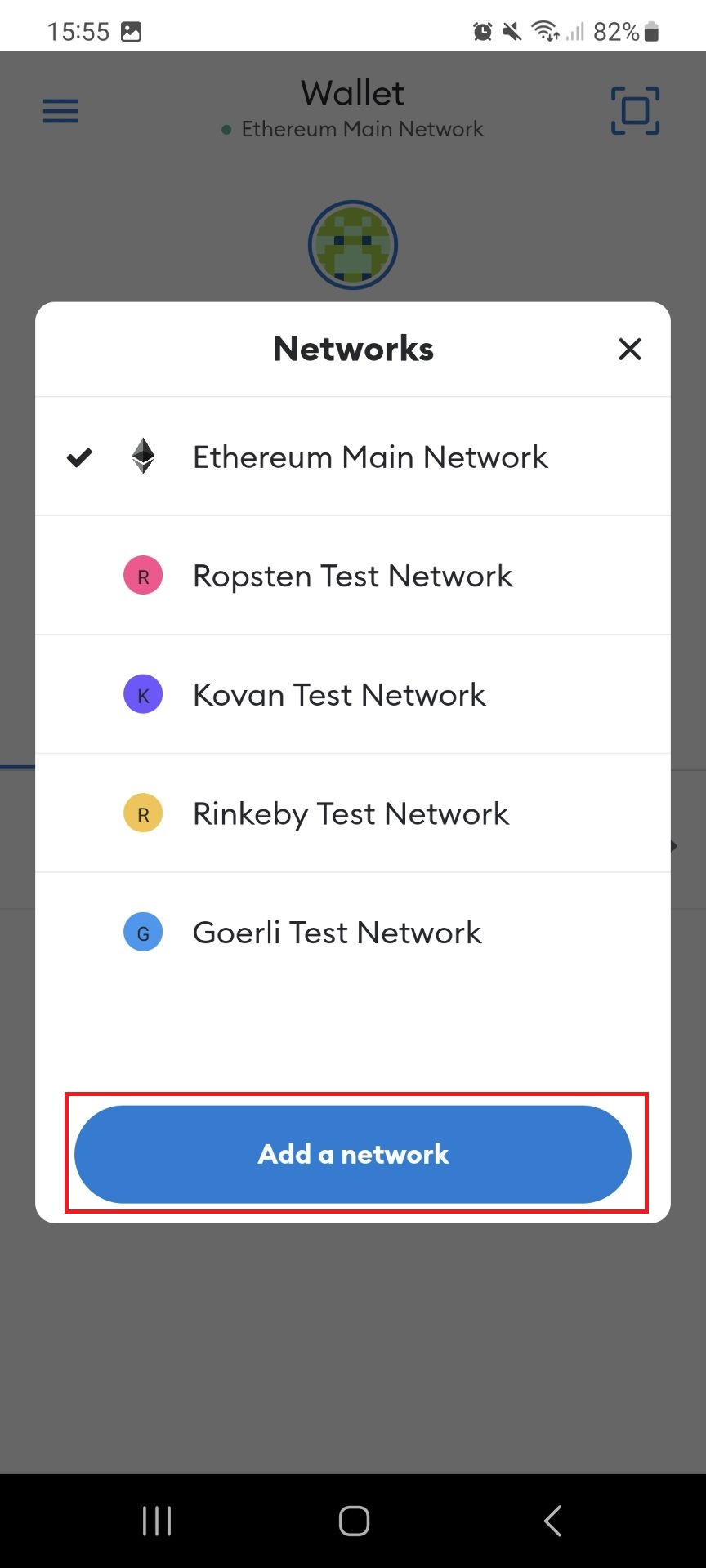 Click "ADD a network". (The other networks listed here are Ethereum test networks.)