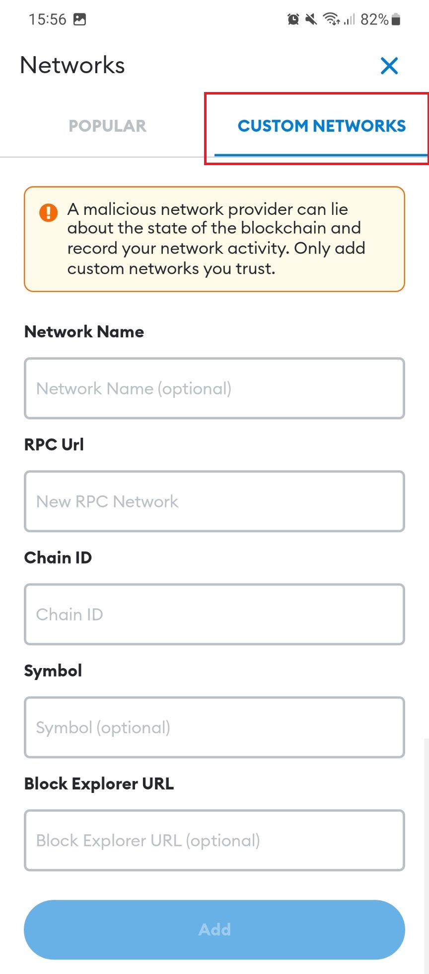 Adding Networks to MetaMask (Smartphone)