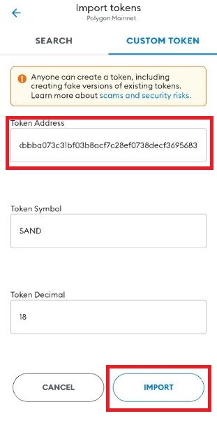 To add a custom token, after clicking "Import Token" click on "CUSTOM TOKEN"