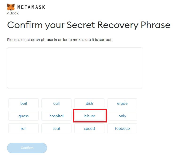 Make a note of the 12 words somewhere safe
