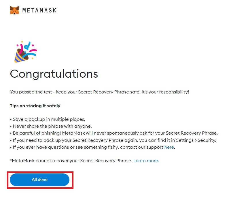Your wallet is now set up. Congratulations