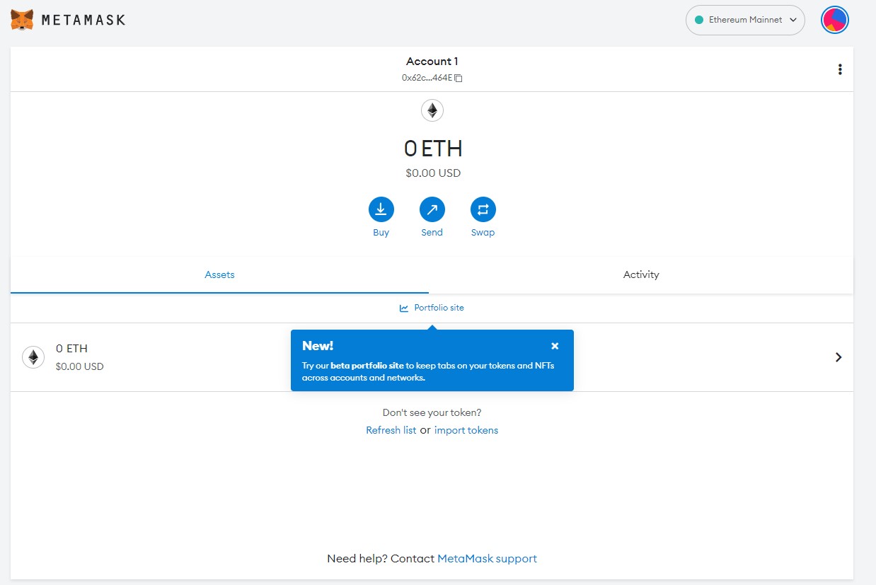 This is what your wallet looks like in the browser