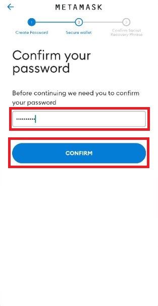 Set up a new password, confirm password and agree to metamask not recovering passwords. Click "Create password".