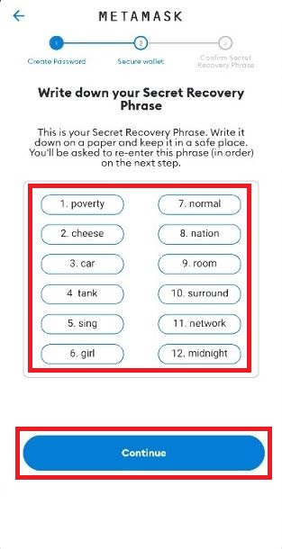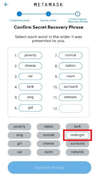 Make a note of all 12 words. IMPORTANT: Do not lose these. You can recover your wallet with these. If you lose them you could loose everything in your wallet!